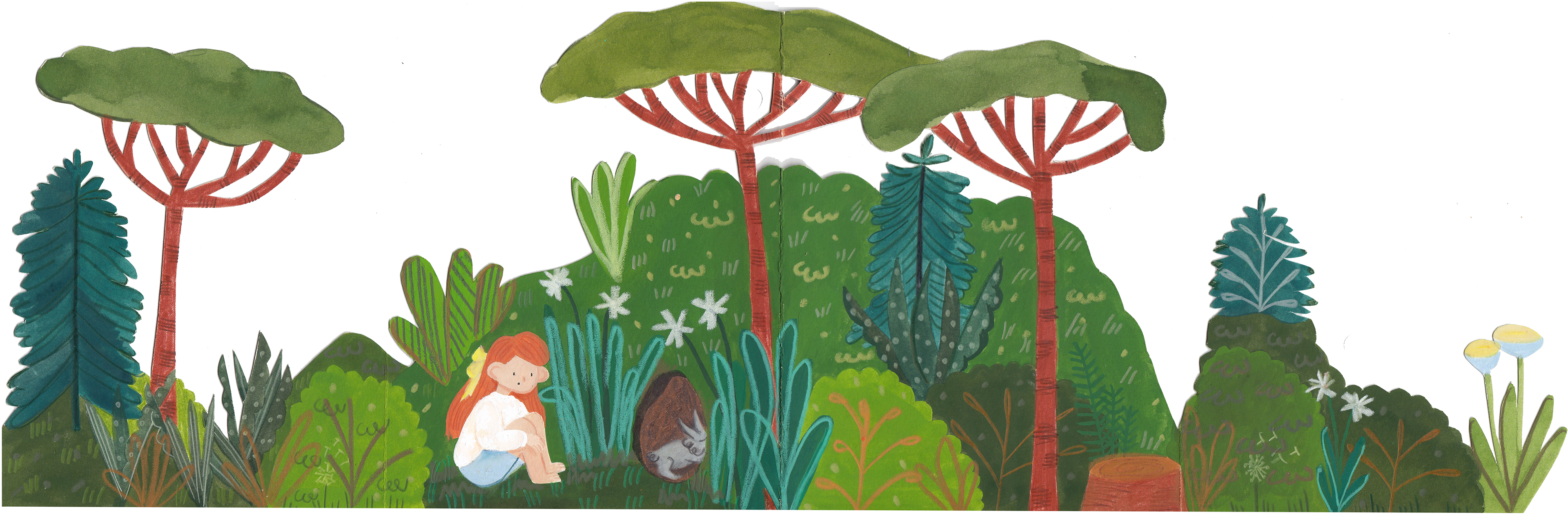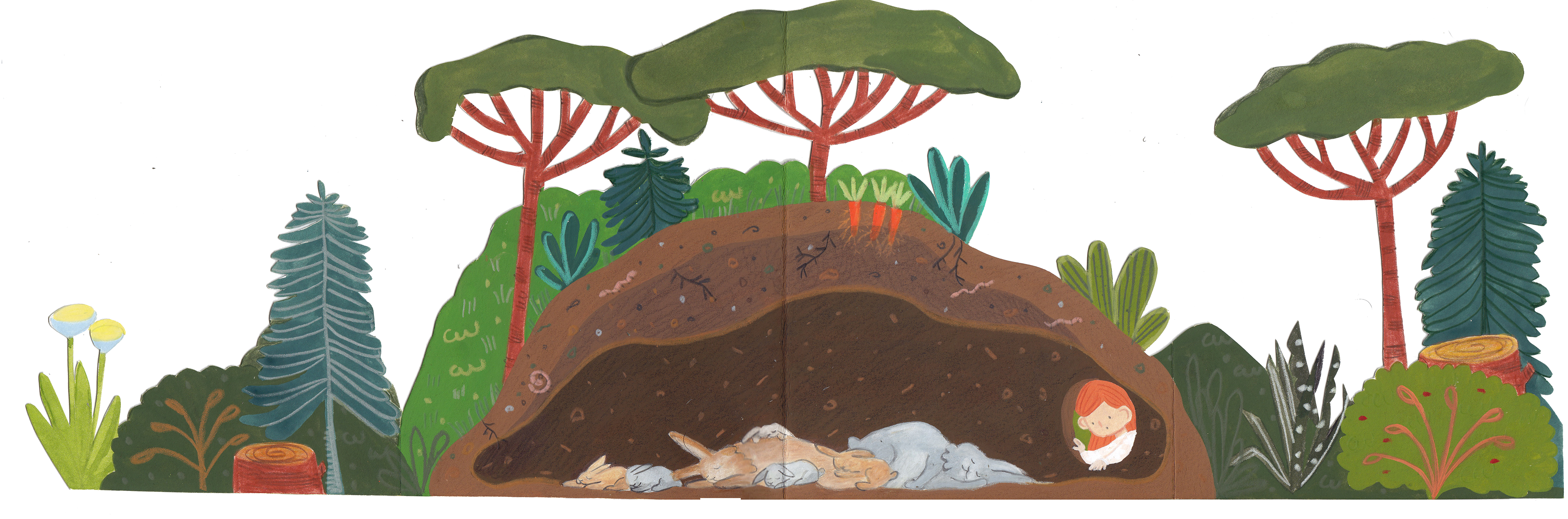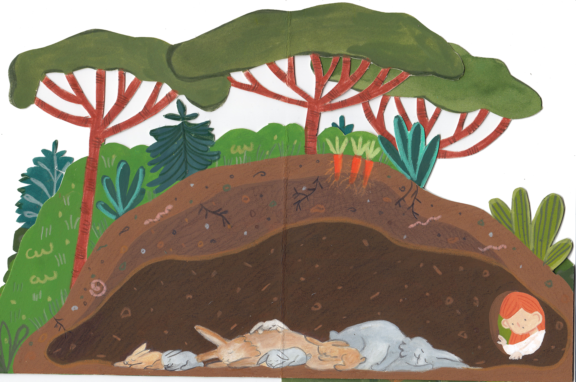 This project is about a little girl who has just found a group of rabbits sleeping. The interesting thing about this story is that it is narrated as the paper unfolds.